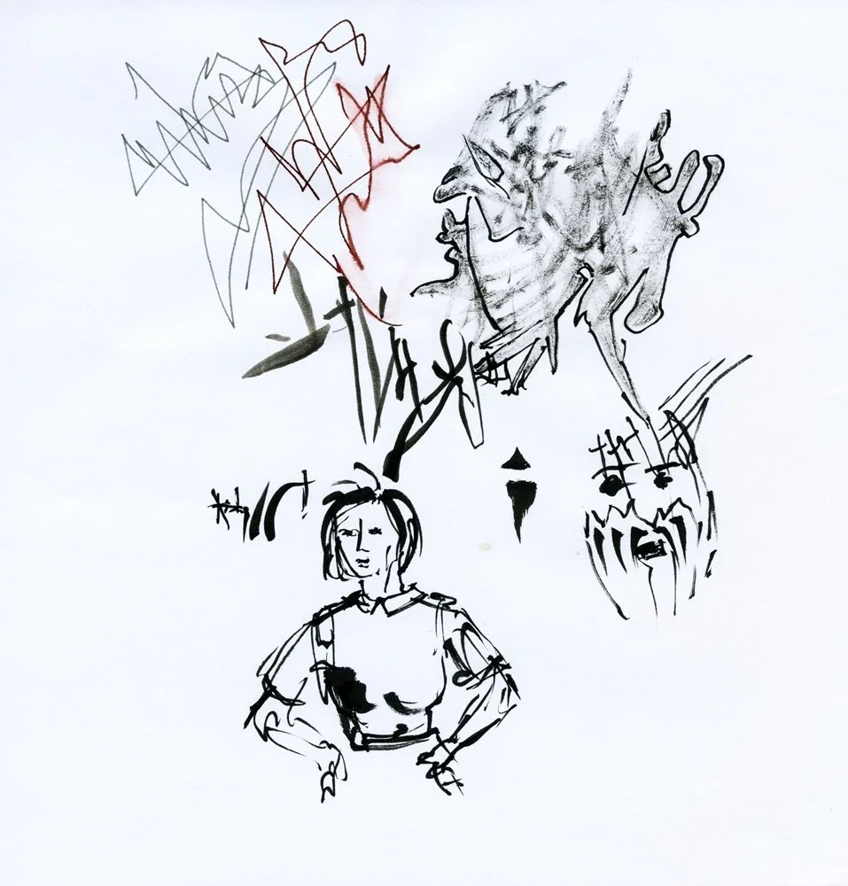 ‘Tekenexperiment’ - mixed media op papier - 20 × 20 cm.