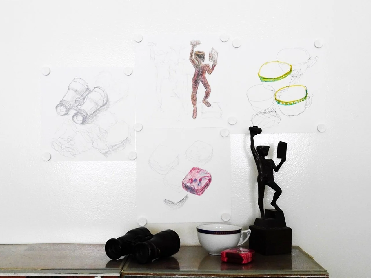 Door je tekeningen of schilderijen tijdelijk op te hangen – bijvoorbeeld met magneetjes op een whiteboard – kun je afstand nemen van wat je gemaakt hebt. Het bord verandert dan in een soort mini-expositie, waarin je je werk in samenhang kunt beoordelen.