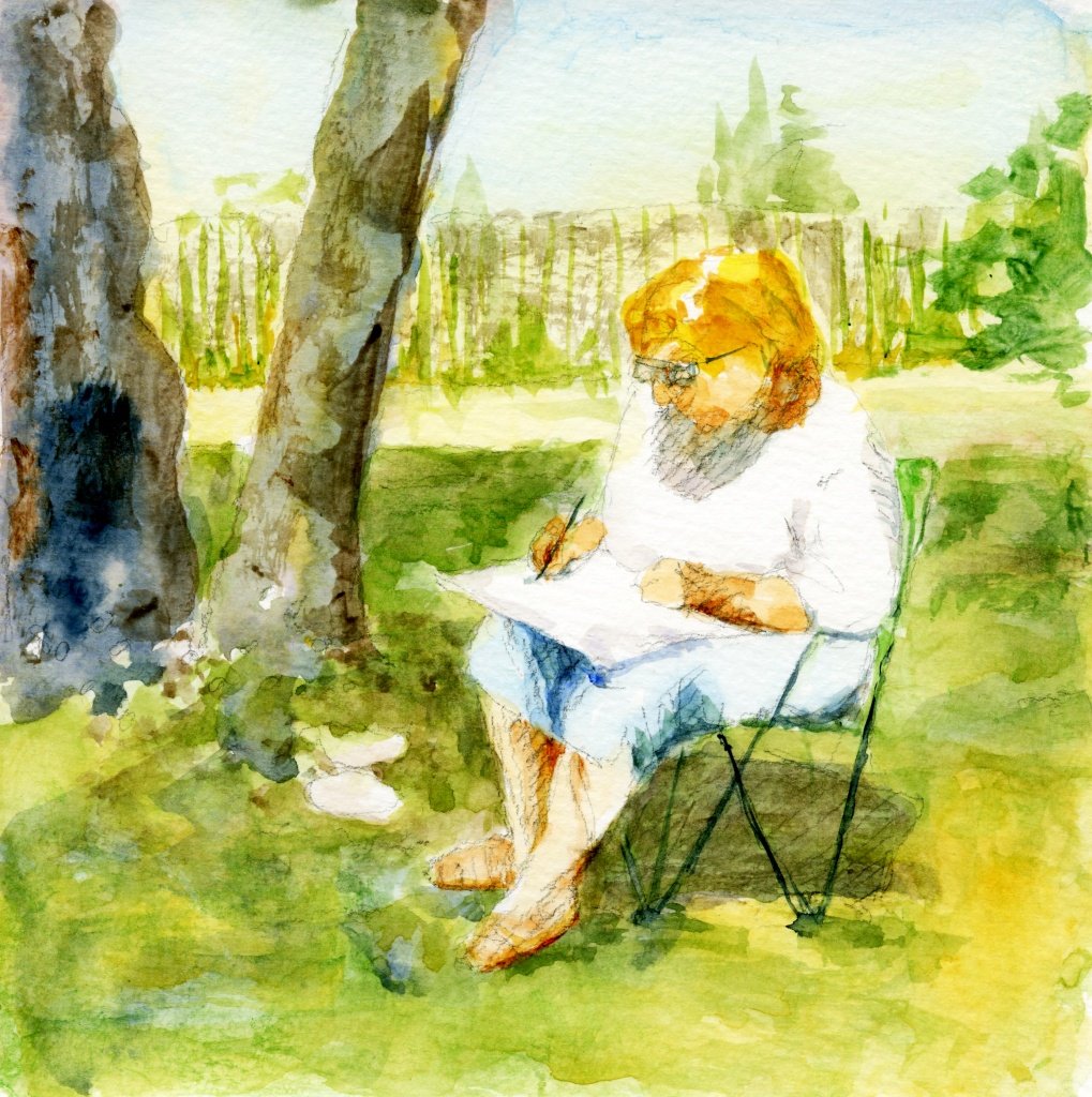 ‘Buiten schetsen’ - aquarel op papier - 20 × 20 cm.