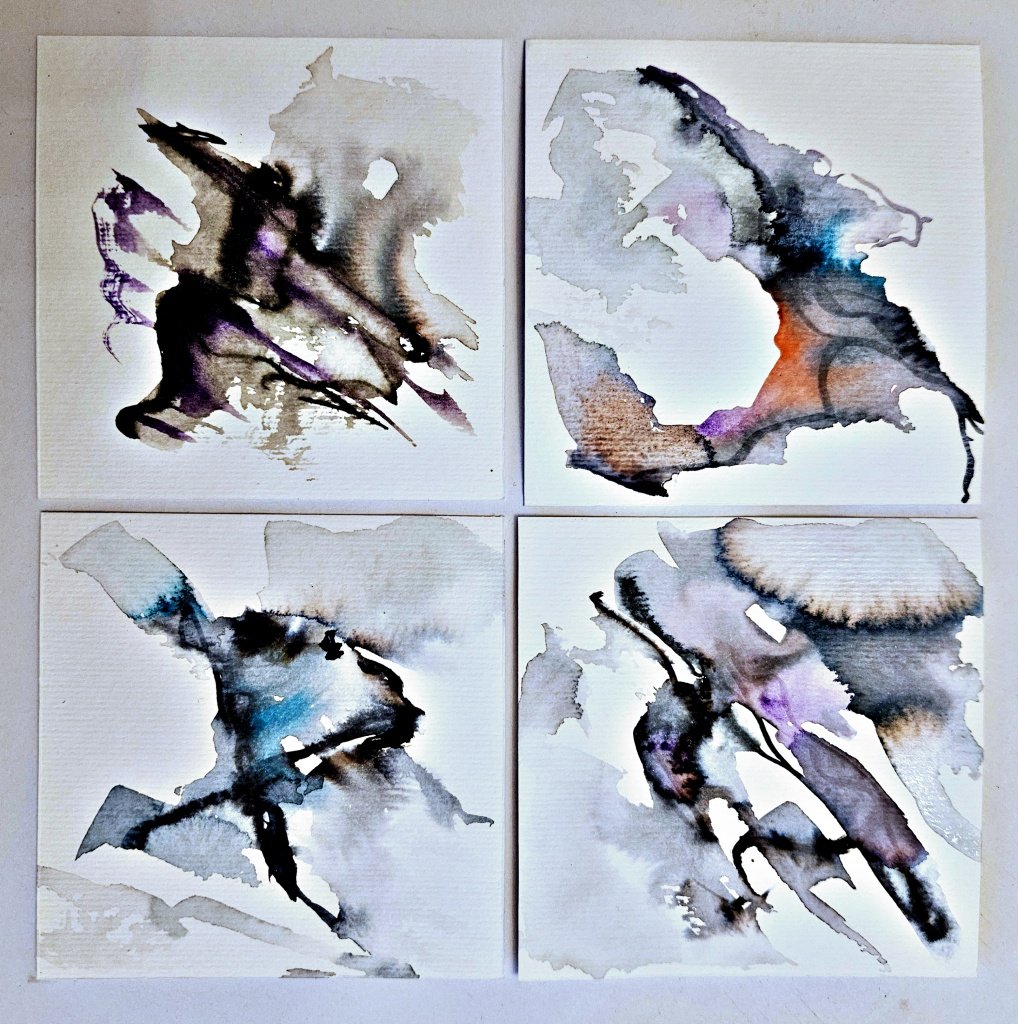 En wat doe ik met zo’n dag? Niet veel. Toch mijzelf een duwtje in de rug gegeven en de kleine vierkantjes (restjes papier) bovengehaald en gewoon een beetje geprutst met aquarelstiften en inkt. Toch iets gedaan.