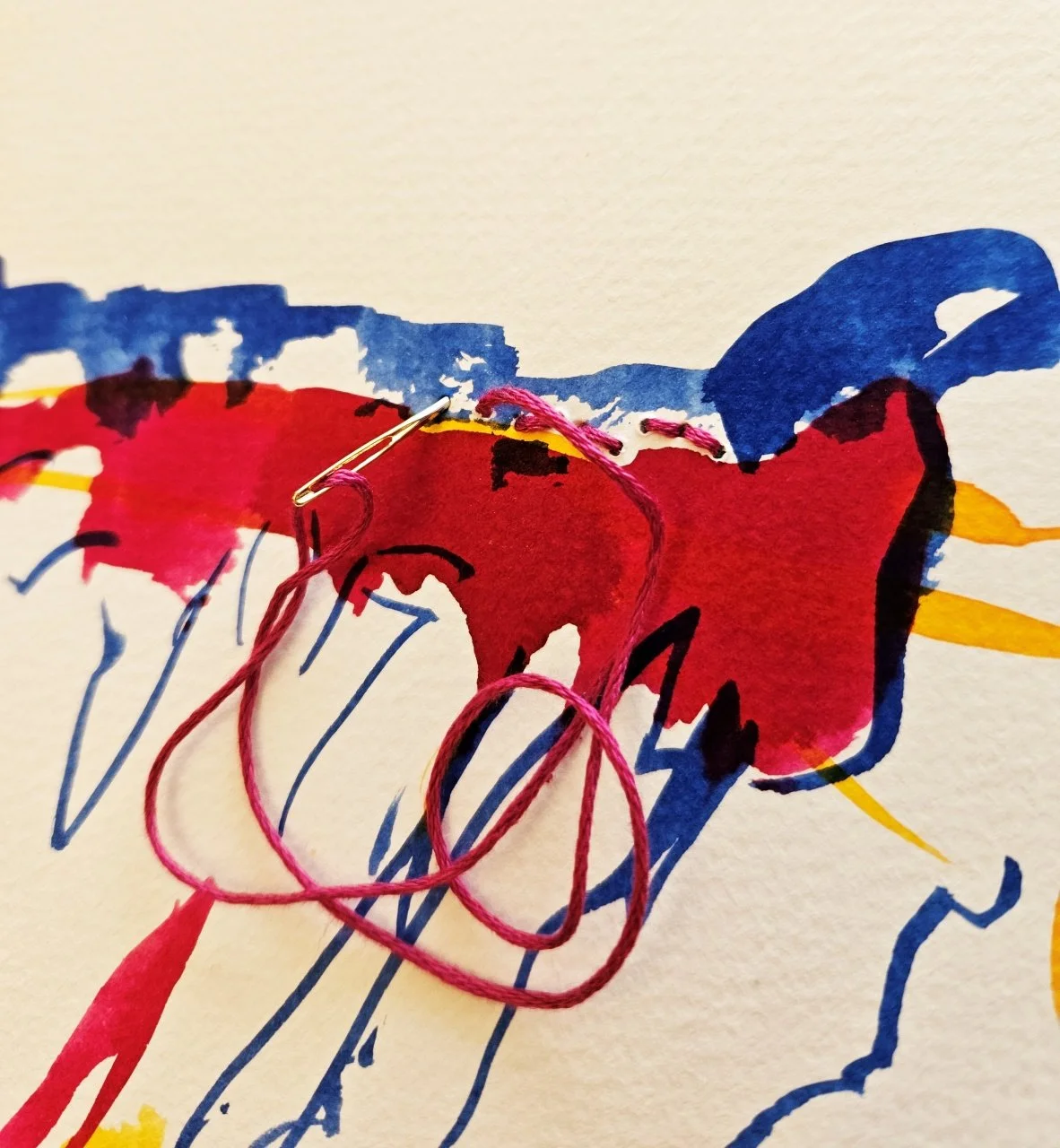 Dag 4: Borduren op papier Draad gebruiken als lijn in je kunst.